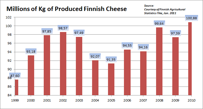has been on the increase. In 2004, Finnish dairies produced around 98 000 tonnes of cheese